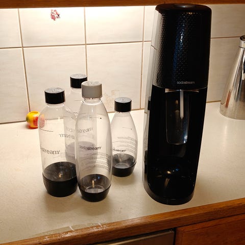 5 Sodastream konsentrat og 2 kullsyrepatroner, nytt, selges kr 400