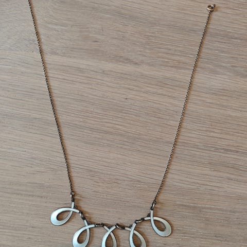 Sølv brosje med håndmalt blomstermotiv i kurv. Brosjen har en rund form med bølgete kant og en nål på baksiden for feste. Forgylt sterling sølv, liten skade i emaljen.