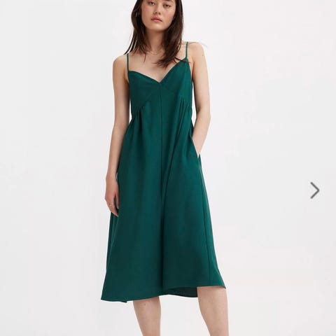 Glidelås, knapper og hempe i livet. Innfelt strikk i liv.