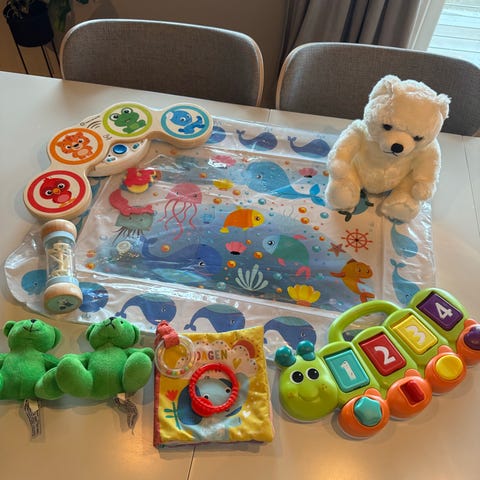 Fin lekepakke med bla. Bøker, fantus, puttekasse, baby Einstein leker ++
