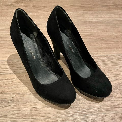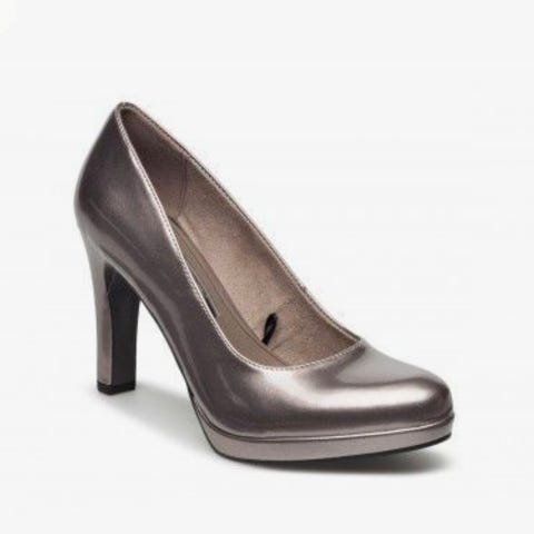 Enkel og elegant damepump fra Marco Tozzi i navyfarget mikrofiber. Skoen er fôret med mikrofiber og har en platinfarget dekksåle. Den har en hælhøyde på 100 mm og et platå på 15 mm. Hælen og platået er belagt med glitter, som gjør den velegnet til den helt store fest. Yttersålen er i PU.