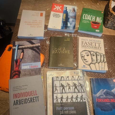Diverse faglitteratur innen ledelse, arbeidsmiljø og arbeidsrett