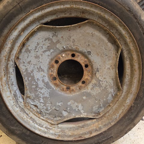 Lampen har tydelig patina etter mange års bruk – rust, slitasje og merker som vitner om et langt arbeidsliv. Glasset er helt og originalt, med riflet struktur. Perfekt for samlere, restaurering av veterantraktor, eller som dekorativt element i verksted, låve, garasje eller industrielt interiør.