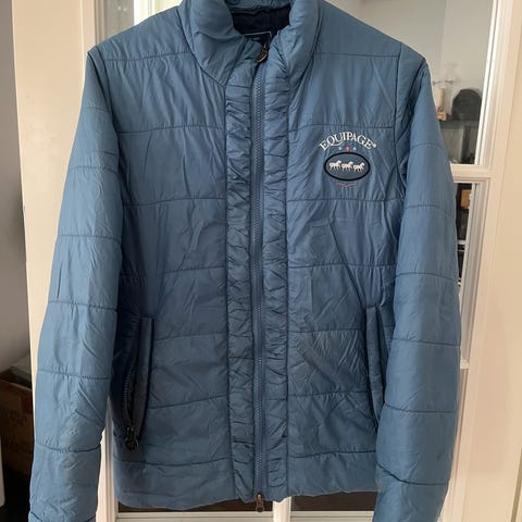 Equipage jakke i størrelse S, blå farge. Jakken har quiltet design og glidelås foran. Egnet for kjølige værforhold.