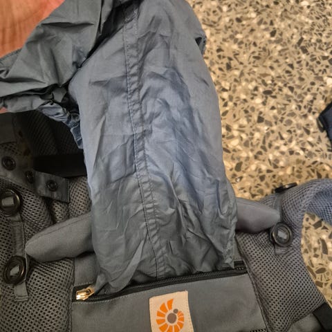 ryggpanelet kan forlenges, brettes ned når barnet sitter forovervendt. Gir ekstra støtte til rygg, nakke og hode ved innovervendt bæring