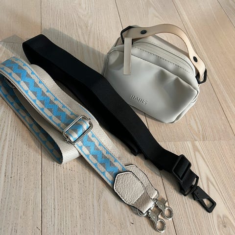 Rains ryggsekk laget av kunstlær, designet for unisex bruk. Ryggsekken har et romslig hovedrom med klaff og spennelukking, justerbare skulderstropper og et håndtak på toppen. Passer til daglig bruk og transport av personlige eiendeler.