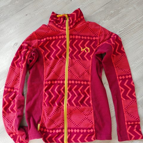 Kari Traa Andre jakker fleecejakke i størrelse S for damer. Jakken er laget av fleece materiale og har en rosa farge med mønster.