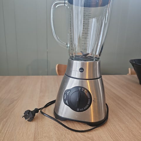 Denne har vært super til å lage smoothie hos oss, men vi har nå skaffet en som er enda større.