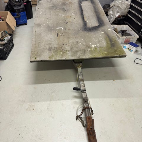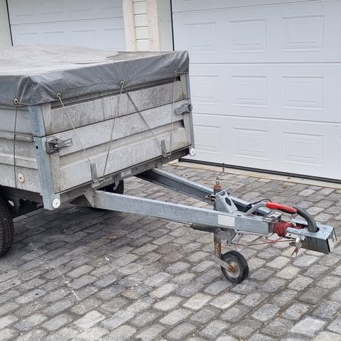 Tysse tilhenger med dobbel aksel og kapell. Godt brukt, men fungerer godt. Lys, bremser og dekk fungerer godt. Mangler en lås bak (se bilde), og er byttet hengsler foran (feste til kapell). Rommer god last!