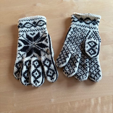 Selbuvotter med selburose. Vottene er laget med fargene svart og hvit. Størrelse medium (M). Til dame.