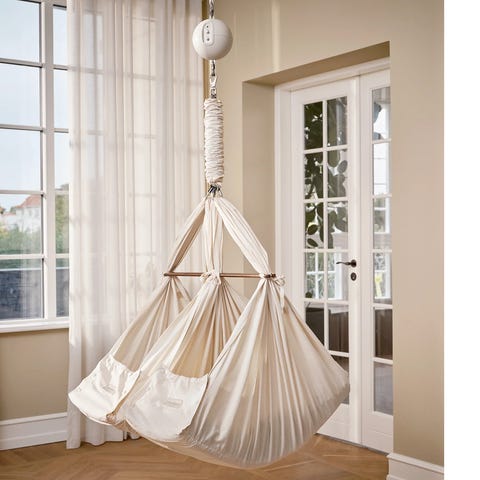 Om vuggen: En hjelpende hånd når du trenger det. Hengevuggen minner babyen om det komfortable og trygge miljøet den hadde i livmoren, og lar den lille føle den vuggende følelsen som vi alle elsker å sovne til.