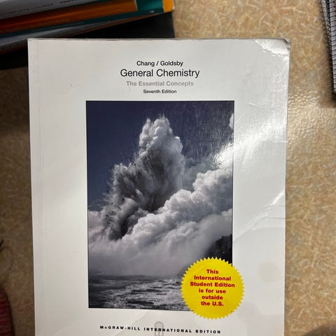 Chang General Chemistry lærebok i kjemi. Internasjonal utgave med fokus på grunnleggende kjemiske konsepter og prinsipper. Inneholder illustrasjoner og forklaringer for bedre forståelse av kjemiske reaksjoner og molekylstruktur.