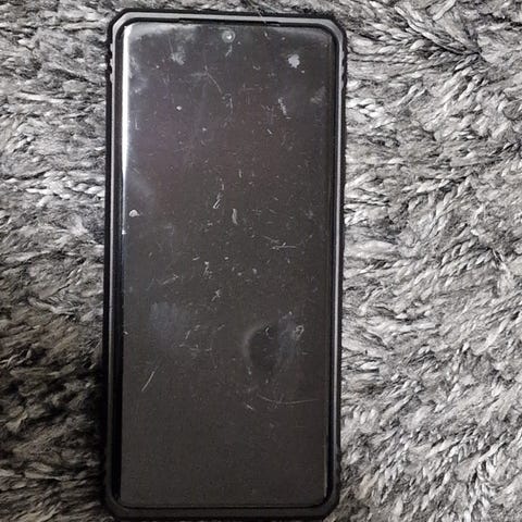 Den funker greit. Har synlig skade nederst i venstre hjørnet, men det påvirker ikke bruken. Har vært veldig fornøyd med telefonen. Fikk ny telefon til jul så har ikke behov for denne lenger. Medfølger SD kort og QI/trådløs lader
