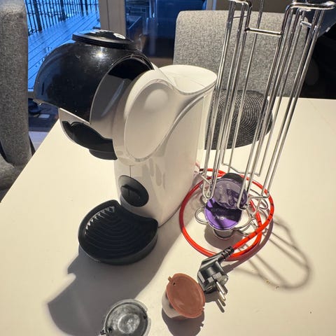 Kaffemaskin selges billig - den ble brukt forsiktig i en knapp uke mens vi ventet på maskinen vi hadde bestilt. Er derfor god som ny og er pakket pent ned igjen i esken med alt som fulgte med.