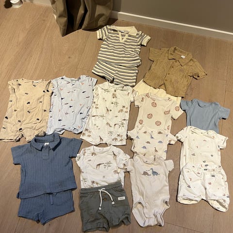 C&A, baby club barneklær i størrelse 68. Klærne har hvit farge og inkluderer ulike plagg med lange ermer og forskjellige mønstre og trykk. Litt liten i str da baby her vokste litt fort så veldig lite brukt. Noe er bare vasket men aldri brukt også.