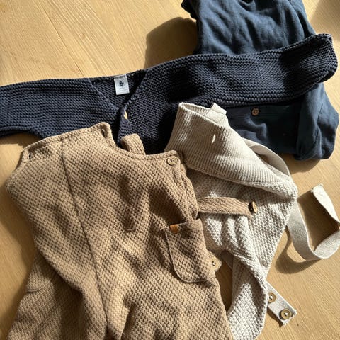 Heldresser fra Petit Bateau og Zara i str.74. Begge heldressene er enkle å ta på med at de enten har knapper/glidelåser som går helt ned på buksebenet. Brukt noen få ganger av et barn. Inger merker eller slitasjer.