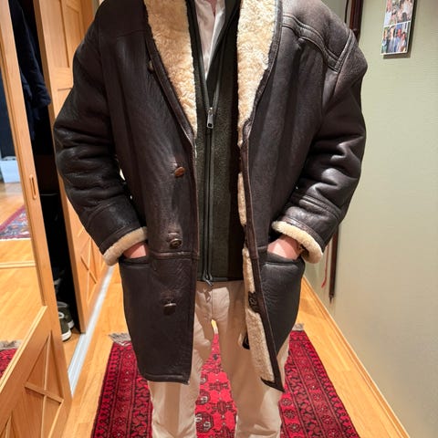 Vintage skinnjakke, brun. Pent brukt. Lekkert for. Innerlommer.