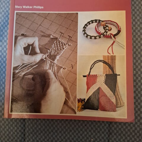 Macrame for Enthusiasts bok med instruksjoner for 12 prosjekter med knytting og dekorative knuter, inkludert mønstre og veiledning for ulike teknikker. Jeg har 6 hefter med makrame oppskrifter som jeg ønsker og selge…200 kr for alle ( de er på engelsk ) Må hentes i Dokkveien 9 på Jeløya i Moss. Tlf 48267068…jeg sender ikke…