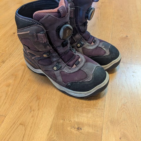 Veldig fine og varme gore-tex vintersko. Svært lite bruksmerker, se bilder. Kjøpte brukt og mangler innersåle. De ble for små her hos oss.