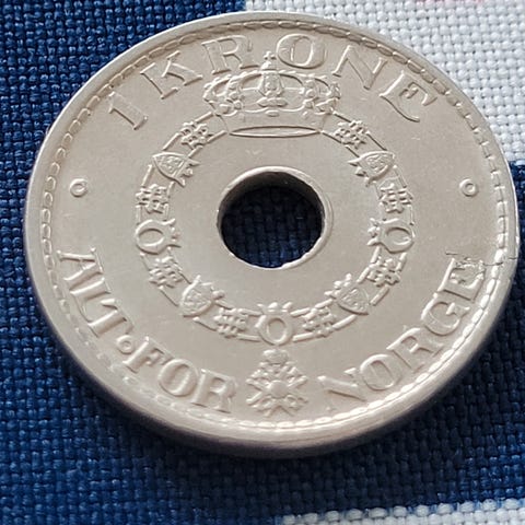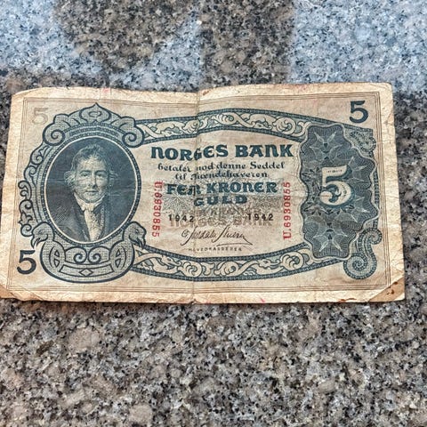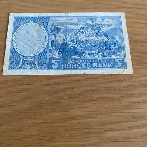 Norges Bank 5 kroner seddel i blå farge 1947C.