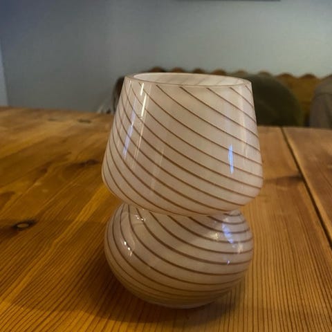 Håndmalt telysholder. Høyde: 23,5 cm.