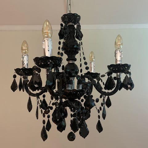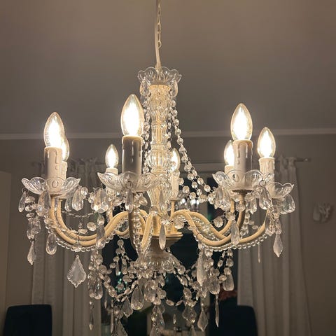 Krystall lysekrone med flere armer og lyspærer