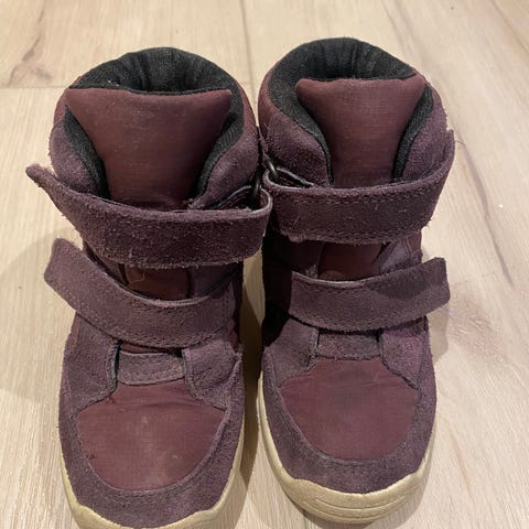 ECCO barnesko i størrelse 25 for jente. Skoene har en lilla farge og er laget med slitesterkt materiale. Designet med borrelåser for enkel justering og påkledning. Egnet for utendørs bruk og gir støtte og komfort for barnets føtter.