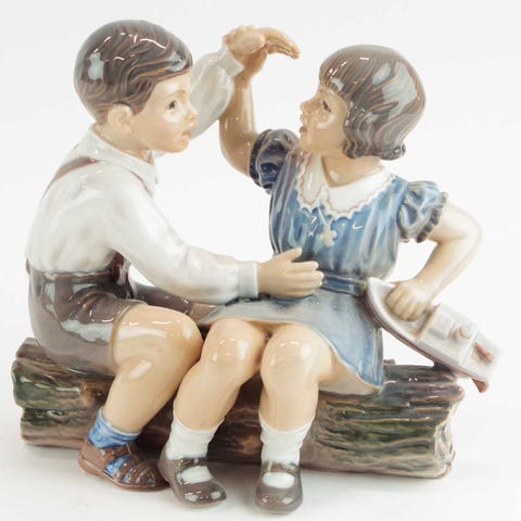 Figurer i porselen / vintage porselensfigurer : jente og gutt med hund