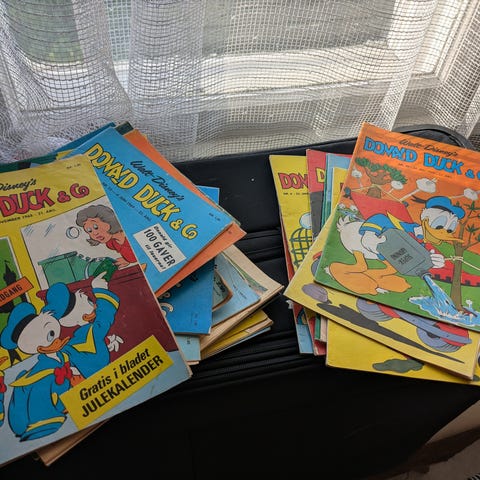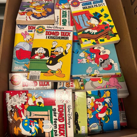 Samling av Donald Duck tegneserier. Inneholder blant annet Donald Duck & Co, komplett 2000-2009, og andre pocketbøker med varierende utgaver. Passer for samlere og lesere av klassiske tegneserier. Og ca 300 Donald Pocketbøker,