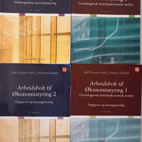 To lærebøker i økonomi og administrasjon med fokus på økonomistyring. Bøkene inkluderer teorier, metoder og oppgaver knyttet til økonomistyring. Passer for studenter og fagpersoner innen økonomi og administrasjon.