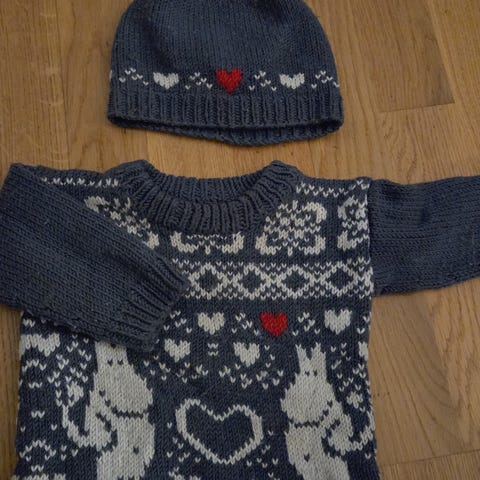 - Veldig fin og praktisk lue og cardigan i 100% ull fra little Jalo, i en fin bruntone. Myke og gode plagg.