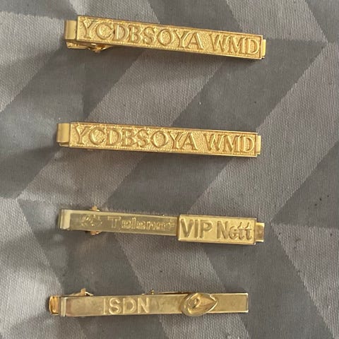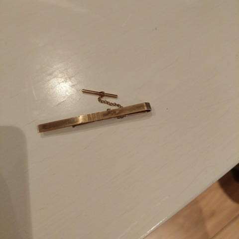 Nydelig slipsnål for herre laget av gullfarget metall.