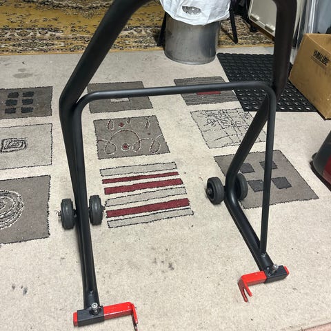 Søkeord motorsykkel forhjulsstøtte biltema forhjul bakhjul mc løfter mc jekk verksted frakt depotstøtte