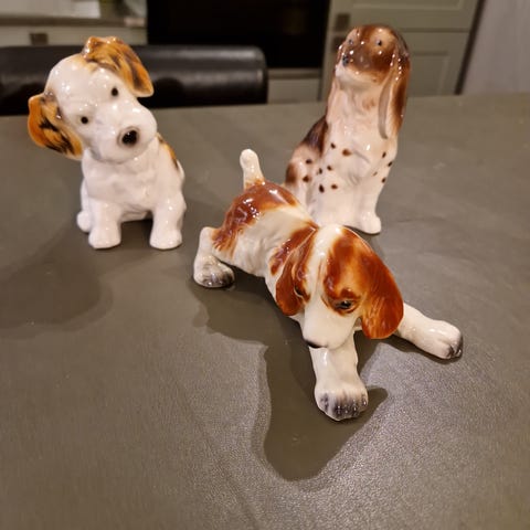 Porselensfigurer av hunder fra 70-tallet , pent ivaretatt