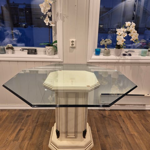 Glasset på spisebord er avtagbar.