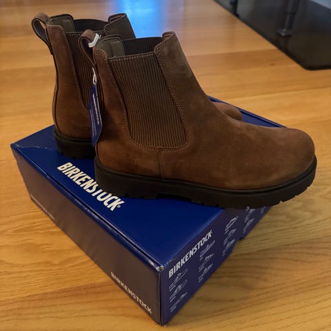 Birkenstock Vintersko i brun skinn, størrelse 40. Støvlene har en solid såle og elastiske sidepaneler for enkel på- og avkledning. Kun brukt et par ganger da dessverre ble for små for meg. Nypris kr 2000, selges rimelig.