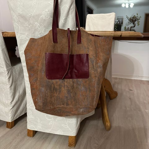 Selger en elegant rød veske fra Zara med justerbar skulderrem og gullfargede detaljer. Vesken har et strukturert design og er laget av slitesterkt materiale (polyuretan). Innvendig står ZARA preget, og den har en praktisk lukking med metallspenne. Brukt kun én gang – fremstår som ny.