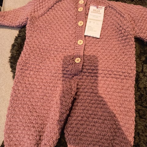 Strikker ulldresser i Silja garn . Str 3-6 mnd. 700 kr for dress, 100 kr for sokker.