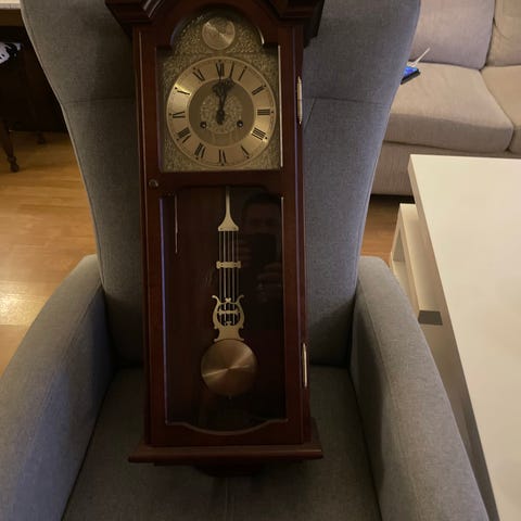 Klokken er fra 30'tallet. Uret fungerer. Service for ca 8 år siden. Ingen synlige