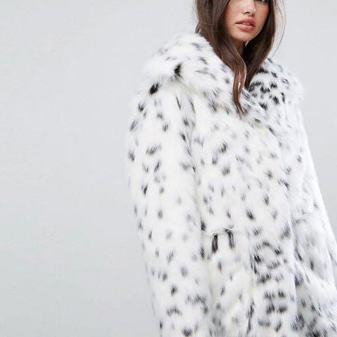 Gina Tricot Kåpe i størrelse 38, så og si ubrukt. Kåpen har et mønster i svart og hvitt, med belte i livet for justering.