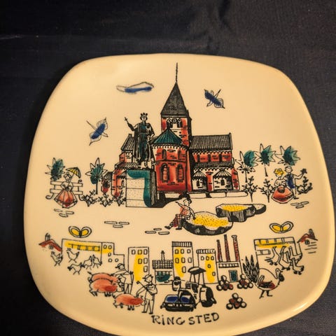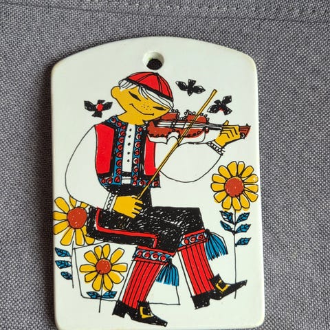 Retro veggplater i porselen fra Stavanger Flint, design av Gro. 15,5x11cm. Pris pr stk.