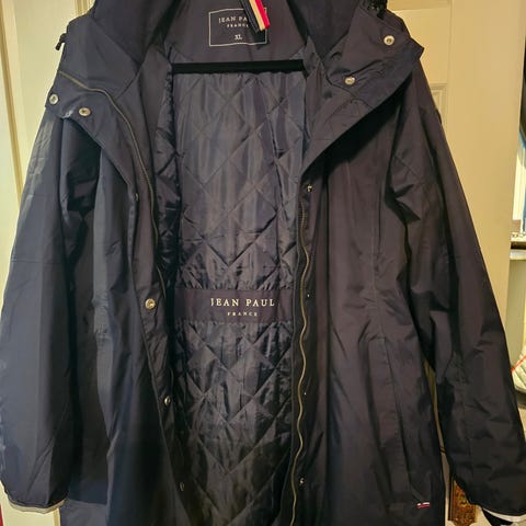 Varm og god vinterjakke. Mørk blå med mange fine detaljer. "Sølv" glidlås, også på lommer og i sidene. Vindtett, vanntett og pustende.