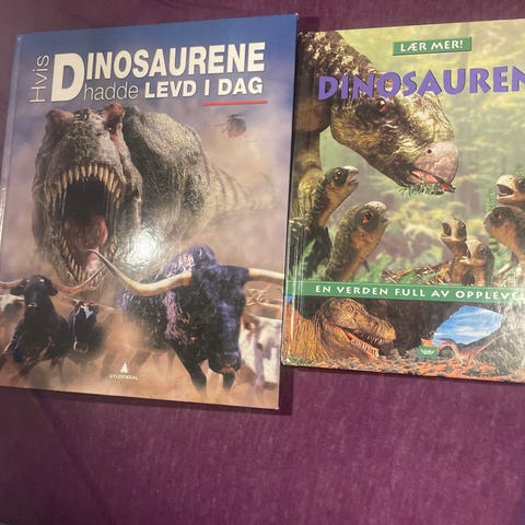 Dinosaurklubben barnebøker, fire ulike titler: Diplodocusjakten, Rasende T-Rex, Trampende Triceratops, og Stegosaurusredningen. Bøkene er illustrerte og rettet mot barn, med fokus på forskjellige dinosaurarter.