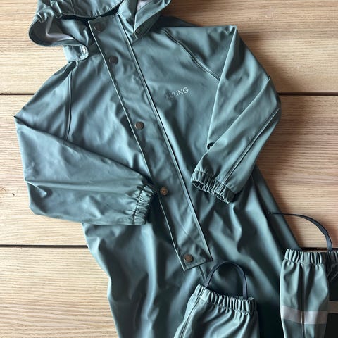 Fleeceforet regndress fra kuling. Lite brukt, har vært reservedress. Selges da den er for liten.