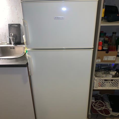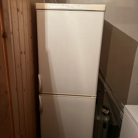 Electrolux kombiskap med kjøleskap og fryser i ett. Hvit farge og standard størrelse, egnet for daglig bruk i hjemmet.