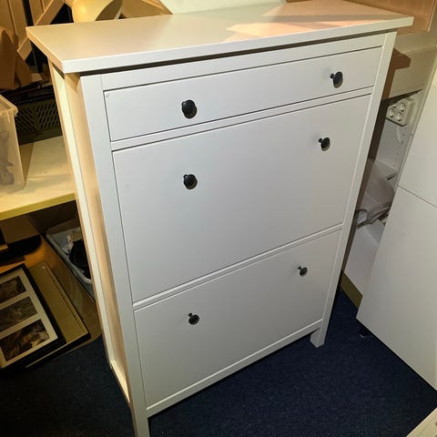Selger HEMNES Skoskap med 2 rom, hvit, 89x30x127 cm på grunn av flytting.