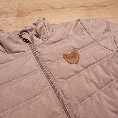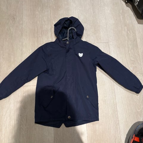 Varm og god boblejakke fra Wheat i dus rosa. Noen små hull på knappestolpen der baksiden av knappen skulle vært, og det midjebåndet slutter. Se eget bilde. Kan fikses ved f eks å feste på refleks. Trenger også en vask.