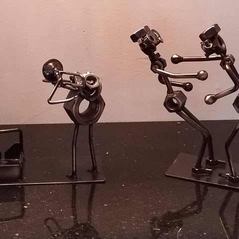 Dekorasjon fra jysk laget av svart metall. Designet som en abstrakt ansiktsfigur med en rund base. Passer som interiørdekorasjon i ulike rom.