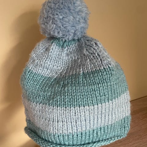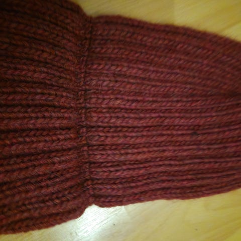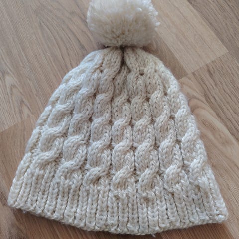 Hjemmestrikket lilla ull lue dame