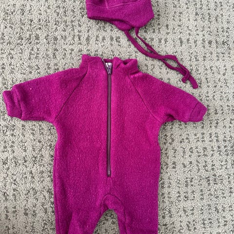 Ullpakke fra Cubus Mini barneklær i størrelse 50/56 i 100 % merinoull. 2 stk body med bukse til (beige og hvit) 1stk heldress i beige. Kjøpt nytt i oktober 2025, og kun vært brukt til ett barn i et par måneder.